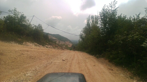 Si riparte, in discesa gli altri volano, io invece resto umile e titubante, inoltre mi fermo a fare qualche fotografia alla magnifica cava alla mia sinistra. In fondo alla discesa saluto Dario e Mark che optano per il corto e mi ricongiungo ad Alex che mi aveva aspettato. Di Paolo e Gigi nessuna traccia, penso siano già più avanti. Iniziamo la seconda salita di giornata il lungo drittone asfaltato che porta verso Serle. Sono 2,5km con pendenza media di 11,5%, ma con il primo chilometro e mezzo costantemente attorno al 15%. Fortunatamente essendo asfaltato non ci sono problemi di aderenza.