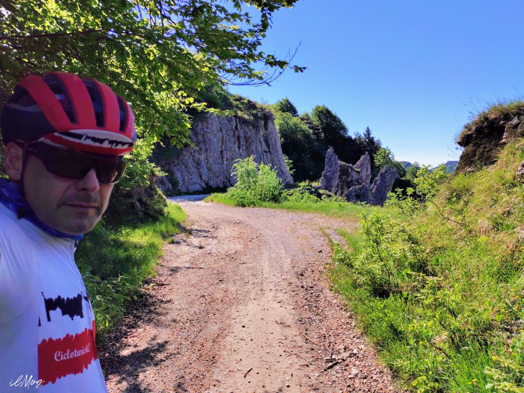 Il tratto che conduce al passo Maniva attraverso il passo Dosso Alto (1.704m) è tanto incantevole quanto ricco di insidie. Incantevole perché la vista sulle cosidette “Piccole Dolomiti Bresciane” che dominano la vallata di Presegno, Bisenzio e Vaiale lascia senza respiro; insidiosa perché il chilometro di strada sterrata ricoperta di sassi taglienti può rovinarti la giornata con il taglio di copertone. Così non è ed io mi godo questa meravigliosa natura alpina. Sono ormai al passo Dosso Alto e vedo poco più in basso il piazzale del Maniva già abbastanza pieno di autoveicoli. Ecco un primo parziale ritorno alla civilità. Infatti una delle cose che adoro del Baremone è che non vi si trova mai traffico, la strada che lo congiunge al Maniva è troppo brutta e stretta e fortunatamente gli automobilisti la disdegnano, solo qualche motociclista la percorre. Tutto ciò consente di pedalare per più di due ore nel totale silenzio ascoltando solamente i suoni della natura. Percorro il breve tratto di discesa che collega il Dosso Alto al Maniva anch’esso sterrato e messo piuttosto maluccio. Alle 10.30 attraverso il piazzale e riprendo a salire in direzione Passo Crocedomini, dai 1.626m del Maniva devo arrivare ai 2.126m del Dosso dei Galli in poco più di 8km che detto così sembrerebbe abbastanza agevole, ma la pendenza media inganna in quanto sono presenti due leggeri tratti di discesa, il secondo più consistente. La pendenza in realtà in buona parte è in doppia cifra, ma la vista a 360° che si gode da questa strada di crinale ripaga di qualsiasi sforzo. Ebbene sì il “Grande Crinale” è questo, il lungo traverso che da passso Baremone (1.400m) conduce fino al passo Crocedomini (1.892m) passando proprio per il dosso dei Galli, il punto più alto ben oltre i 2.000m. Una strada di oltre 26km sempre in quota e spesso sul crinale che separa le valli, una merviglia che dovrebbe essere riconosciuta anche dalle comunità montane delle tre valli bresciane. Una strada che partendo dall’alta val Sabbia si affaccia sulla val Trompia e termina in val Camonica.