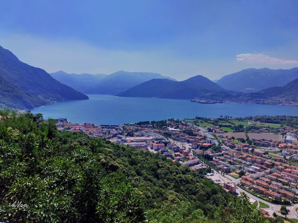 A Bienno finisce la discesa vera e propria o comunque la parte tecnica, mi fermo alla fontana a svuotare e riempire le borracce con acqua fresca. La temperatura è ormai sopra i 30°C, attraverso Berzo Inferiore e dalla circonvallazione di Esine prendo a sinistra la deviazione per le due frazioni di Sacca e Plemo che mi conduce in centro a Darfo per via poco trafficata. Da pochi anni è ormai pressoché completa la ciclovia della val Camonica ne approfitto per discendere la valle fino a Pisogne. Ho sempre odiato il lungo rettilineo da Darfo a Grattacasolo sulla provinciale in mezzo al traffico e anche se la ciclabile mi costringerà ad un continuo zigzagare nei campi attorno all’Oglio tutto ciò sarà nettamente più piacevole. Così è, il passaggio tra campi, maneggi, allevamenti, l’avvicinarsi dell’argine dell’Oglio rendono questi 15km molto più interessanti e soprattutto rendono meno fastidioso il forte vento di termica che il pomeriggio risale sempre la val Camonica. Giungo a Pisogne, sono le 14.30, potrei costeggiare il Sebino e tornare a Brescia maledicendo il forte vento contrario oppure salire al colle si S.Zeno e ammirare il lago dall’alto scendendo poi in val Trompia. Ovviamente propendo per la seconda, per me qualiasi salita è meglio del forte vento contrario. Vengo subito premiato, la chiesa di S.Maria della Neve con il celeberrimo ciclo di affreschi del Romanino è aperta. Immancabile la visita e il reportage fotografico, è la prima volta che riesco ad entrare dopo la scomparsa di mia madre.